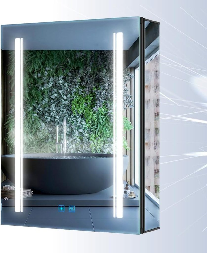 Cette armoire est équipée d’un miroir LED à luminosité réglable, permettant d’adapter l’éclairage aux besoins spécifiques de chaque utilisateur. L’interrupteur à capteur tactile facilite l’utilisation quotidienne, rendant l’expérience utilisateur fluide et agréable. De plus, la fonction de désembuage s’active automatiquement, garantissant que le miroir reste clair même après une douche chaude.
